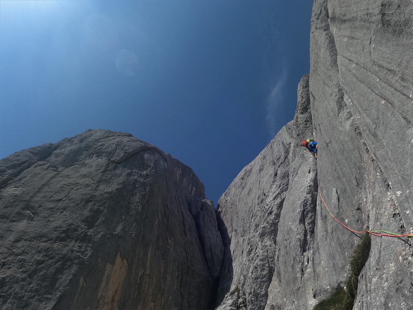 Start unseres kleinen Roadtrips war am Hochkönig. Das Wetter war in Südtirol leider unbeständig, also warum weit mit dem Auto fahren. Ein super Tour durch kompakten Kalk. Beim Zustieg muss man schon mit mindestens 2h rechnen. Die Tour ist gut abgesichert, aber 5-6m muss man z.B. bei den Wasserrillen schon reinklettern. Auch die 6+ Seillänge ist ziemlich defizil zu klettern. Die Abseilpiste hat gut funktioniert und das Bier hat gut geschmeckt. So soll es sein.